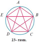 hammasi avval hisoblangan (EA = AE; EB = BE; EC = CE; ED = DE). Demak, aylanada belgilangan 5 ta nuqtani tutashtiruvchi jami kesmalar