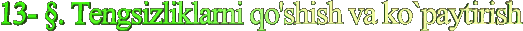 Bu misollarni qarashda tengsizliklarni qo`shish va ko`paytirish haqidagi quyidagi teoremalar qo`llaniladi.