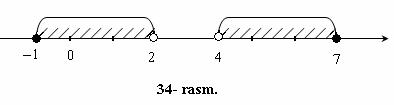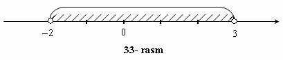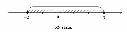 tengsizlikni qanoatlantiruvchi x sonlar to`plami (33- rasm).