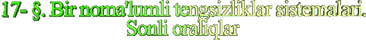 S o n l i o r a l i q l a r . Bir noma’lumli tengsizliklar sistemalarining yechimlari har xil sonli top`lamlar bo`ladi. Bu to`plamlar o`zlarining nomlariga ega.