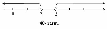 Son o`qida x < 2 va x > 3 nurlarni tasvirlaymiz (40- rasm).