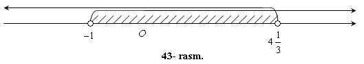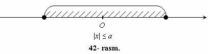 Bu tengsizlikni 0 nuqtadan a dan katta bo`lmagan masofada yotuvchi barcha x nuqtalar, yani [a, a] kesmaning nuqtalari qanoatlantiradi (42- rasm).