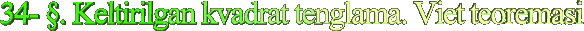 ko’rinishdagi kvadrat tenglama keltirilgan kvadrat tenglama deyiladi. |