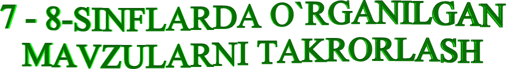 Aziz o`quvchi! Siz 7 – 8- sinflarda algebraik ifodalar, birhad va ko`phadlar, ko`phadlarni ko`paytuvchilarga ajiratish, algebraik kasrlar, tengsizliklar, chiziqli funksiya va uning grafigi, ikki noma’lumli ikkita chiziqli tenglamalar sistemasi, taqribiy hisoblashlar, kvadrat ildizlar, kvadrat tenglamalarga doir misol va masalalarni yechgansiz. 7 – 8- sinflarda matematkadan olgan bilimlaringizni yodga solish maqsadida Sizga bir qator mashqlar taklif etamiz.